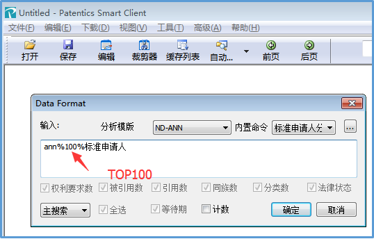 好了,有了Patentics的全球标准化申请人技术的支持,我们可以对1亿多的全球专利进行大数据分析。分析表达式为,